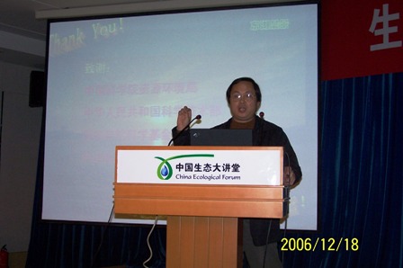 报告人:谢平,中科院生态系统研究网络东湖湖泊生态系统试验站(国家重点野外台站)站长,淡水生态与生物技术国家重点实验室副主任,中科院水生生物研究所淡水生态学研究中心主任。1989年于日本筑波大学生物系生物学专业获理学博士学位;1998年入选中国科学院“百人计划”,1999年获生态学琵琶湖奖(日本),2001年获中科院青年科学家奖,并被评为优秀百人计划获得者。2003年获国家杰出青年基金资助。