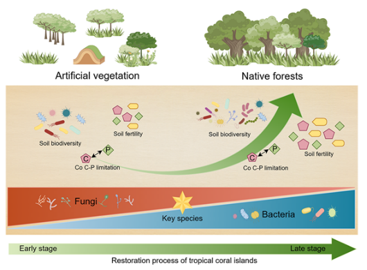 鹤山站研究揭示热带珊瑚岛生态恢复的微生物途径-真菌“打头阵”,细菌“稳后方”