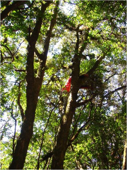 地衣(又称地衣型真菌)作为菌藻共生的特殊生物类群,是森林林冠亚系统的重要组成成分,在森林系统中发挥着重要的生态功能。由于受其个体微小、物种鉴定困难以及进入林冠调查采样技术手段等方面的限制,地衣尤其是林冠附生地衣的生态学研究远远滞后于其他学科。在森林保护与管理中,地衣类群也未得到相关的重视。并且,相对于其水平分布研究而言,附生地衣垂直分布的研究资料更加匮乏。科学家对于不同森林系统内附生地衣的物种分布是否存在空间垂直分布模式的科学问题,迄今尚无法回答。